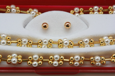 Conjuntos : JUEGO PERLA bl 5mm.+bolitas doradas y canutillo